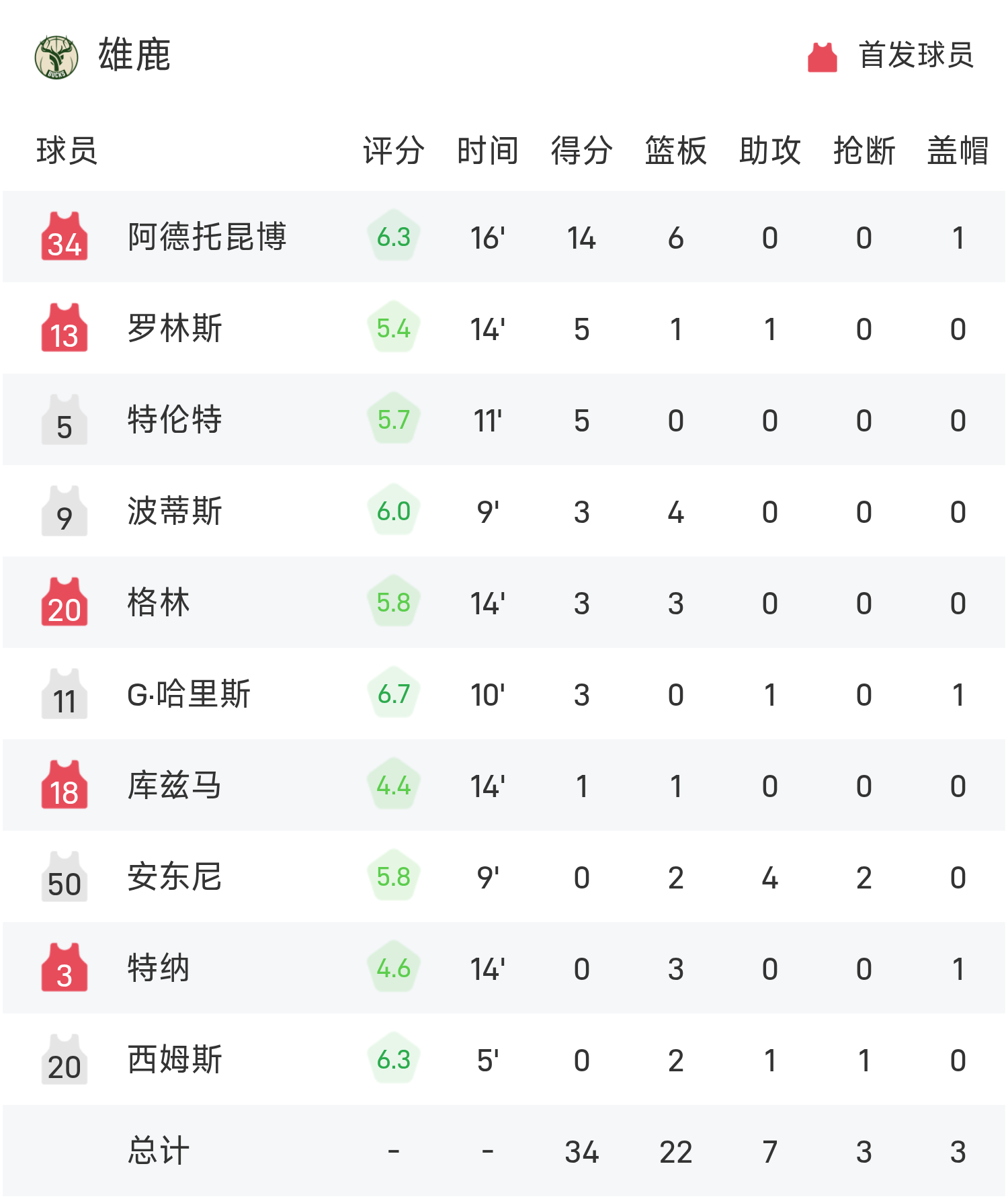 东契奇砍下全场最高的21分5板5助,字母哥14分5差错,库兹马6投0中仅得1分。