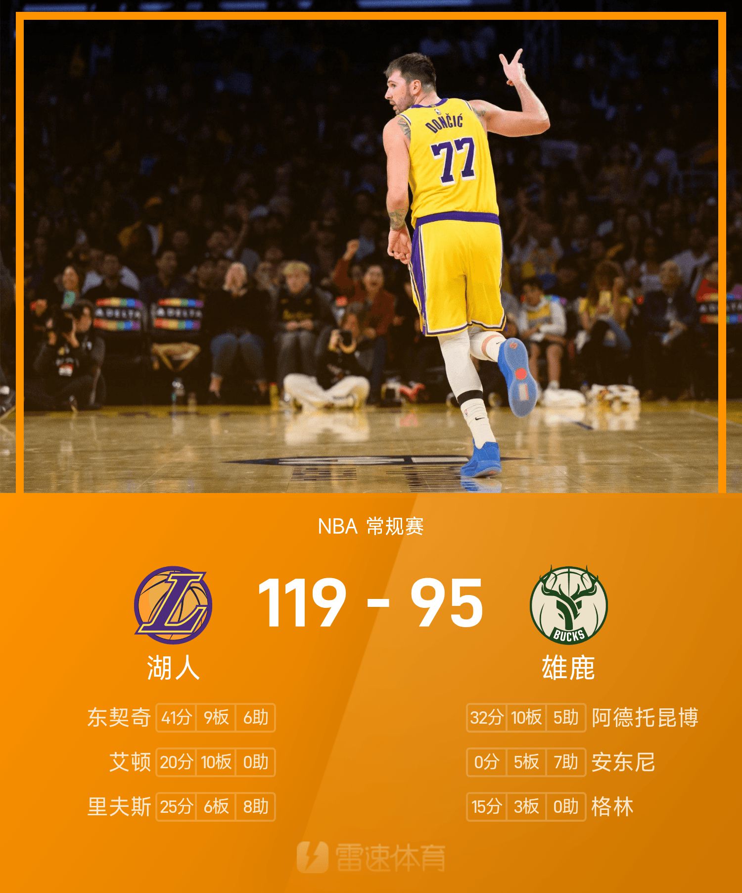 东契奇砍下赛季第4次40+并带队客队场大胜对手。