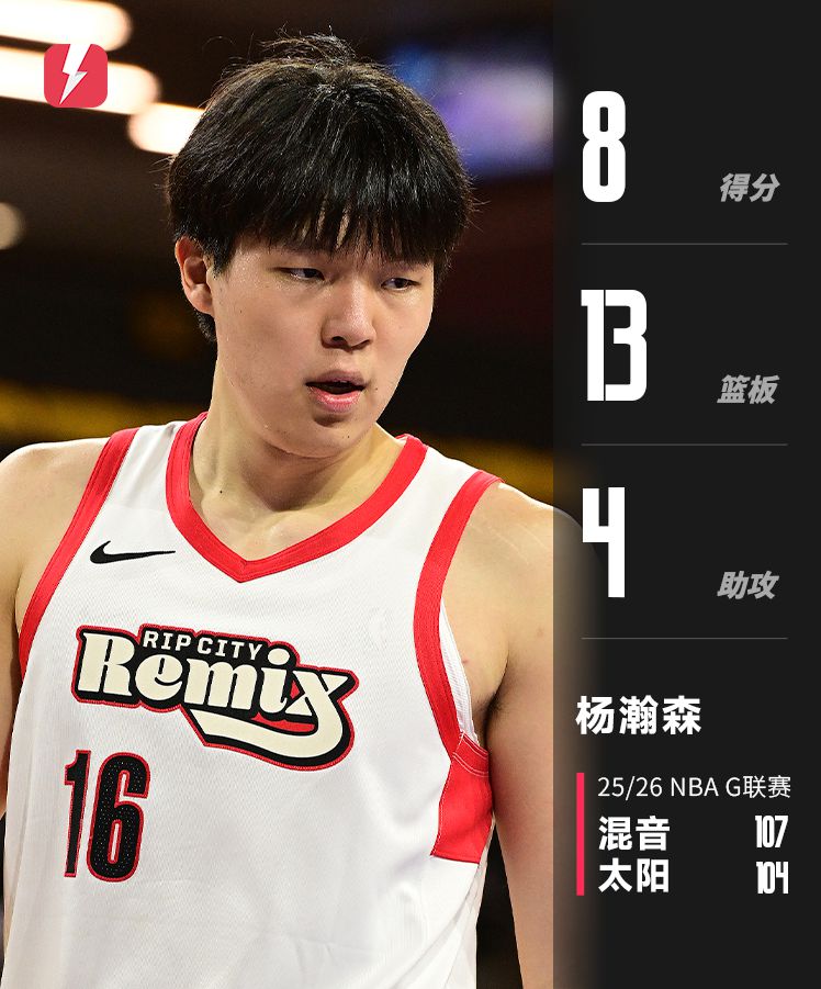 其中混音的杨瀚森本场竞赛拿下8分13抢篮板4助攻的全面数据,而对位的10号秀马鲁阿奇则是得到9分4抢篮板。