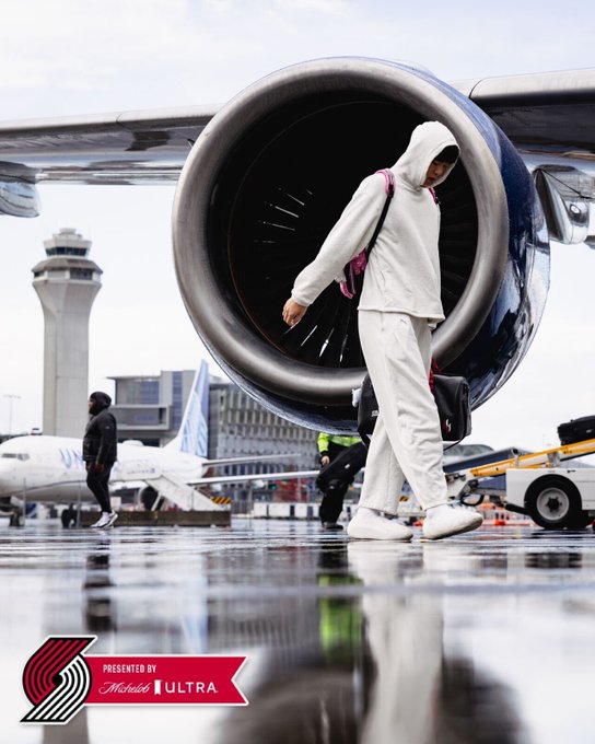 出发前往客队场!开拓者官方社媒晒照,杨瀚森出镜
