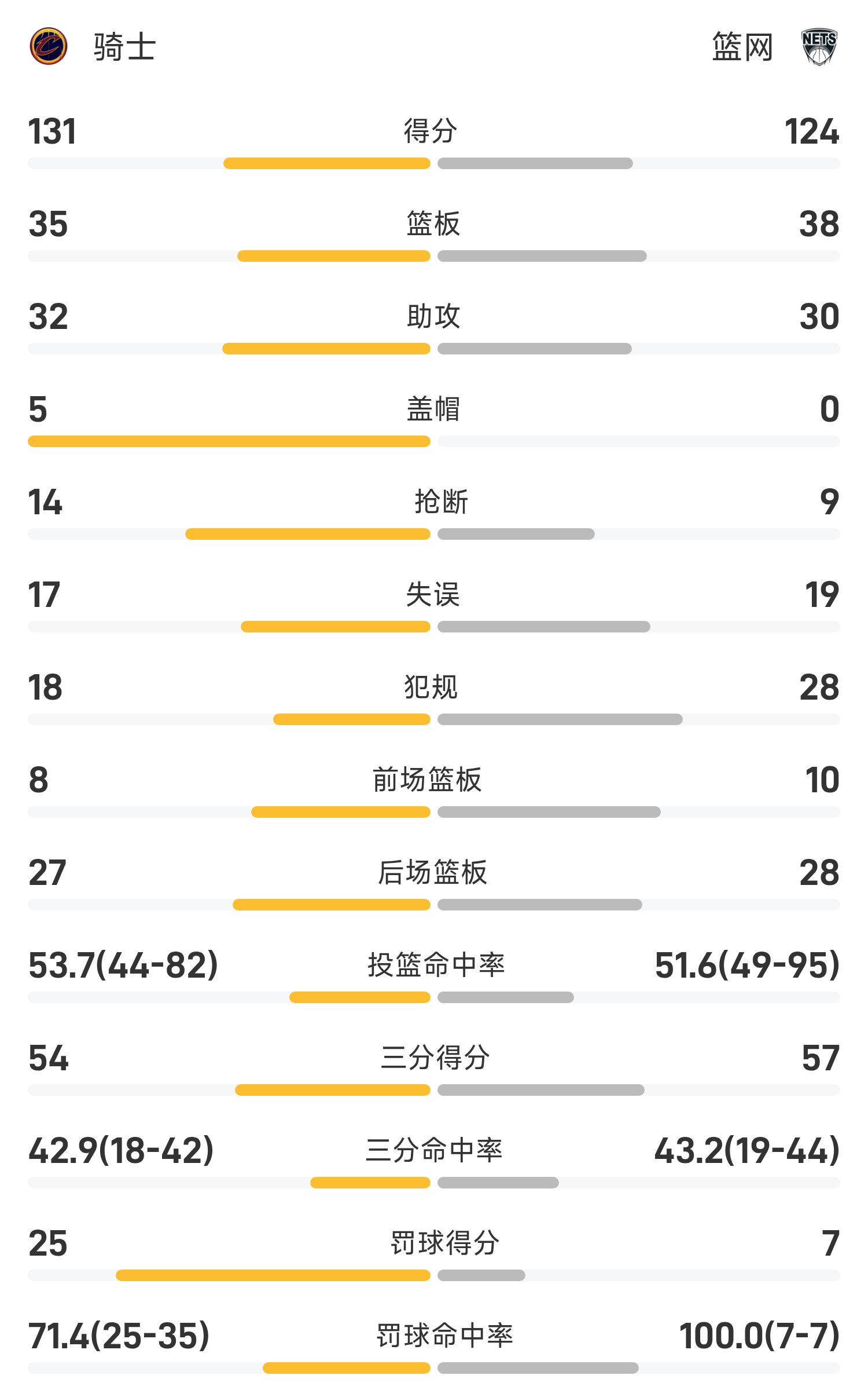 NBA战报:米切尔35分,骑士131-124击败篮网
