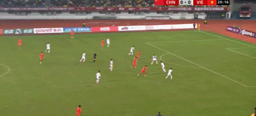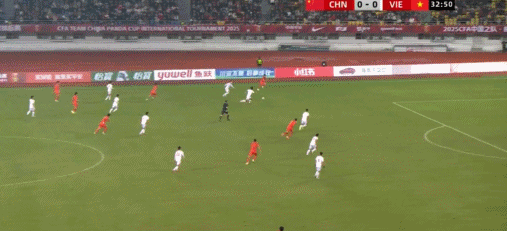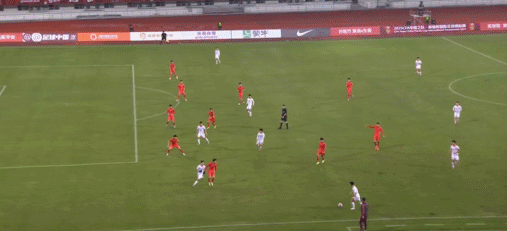 33’中国队左路输送威胁传禁区,门前包抄球员慢了一步