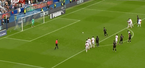79’B费主罚边线球直接旋向球门口,守门员奋力将皮球给托出