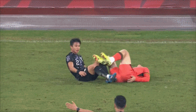 80’陈泽仕倒地后有附加动作,主裁判判出示警告牌