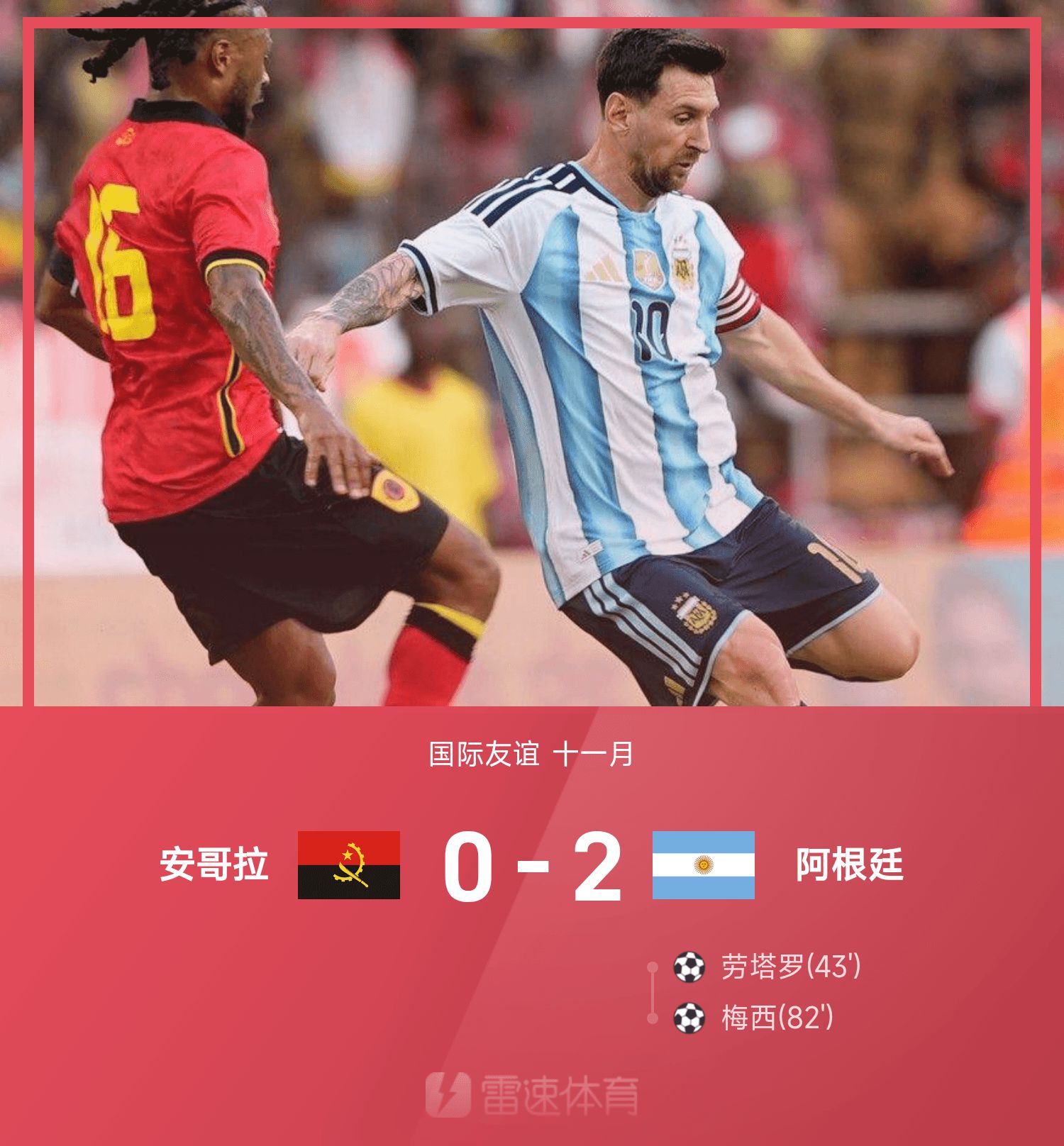 友谊赛战报:梅西、劳塔罗双双传射,阿根廷2-0安哥拉
