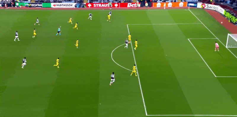 阿斯顿维拉首发阵容:23-马丁内斯、3-林德洛夫、4-孔萨、14-托雷斯、22-马特森、19-桑乔、24-奥纳纳、29-盖桑、27-罗杰斯、26-博加德、17-马伦