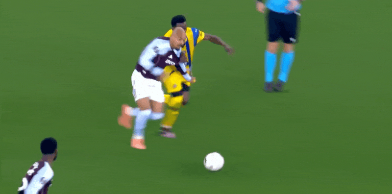 2’奥纳纳断球后送直传球,什洛莫倒地铲球化解罗杰斯单刀