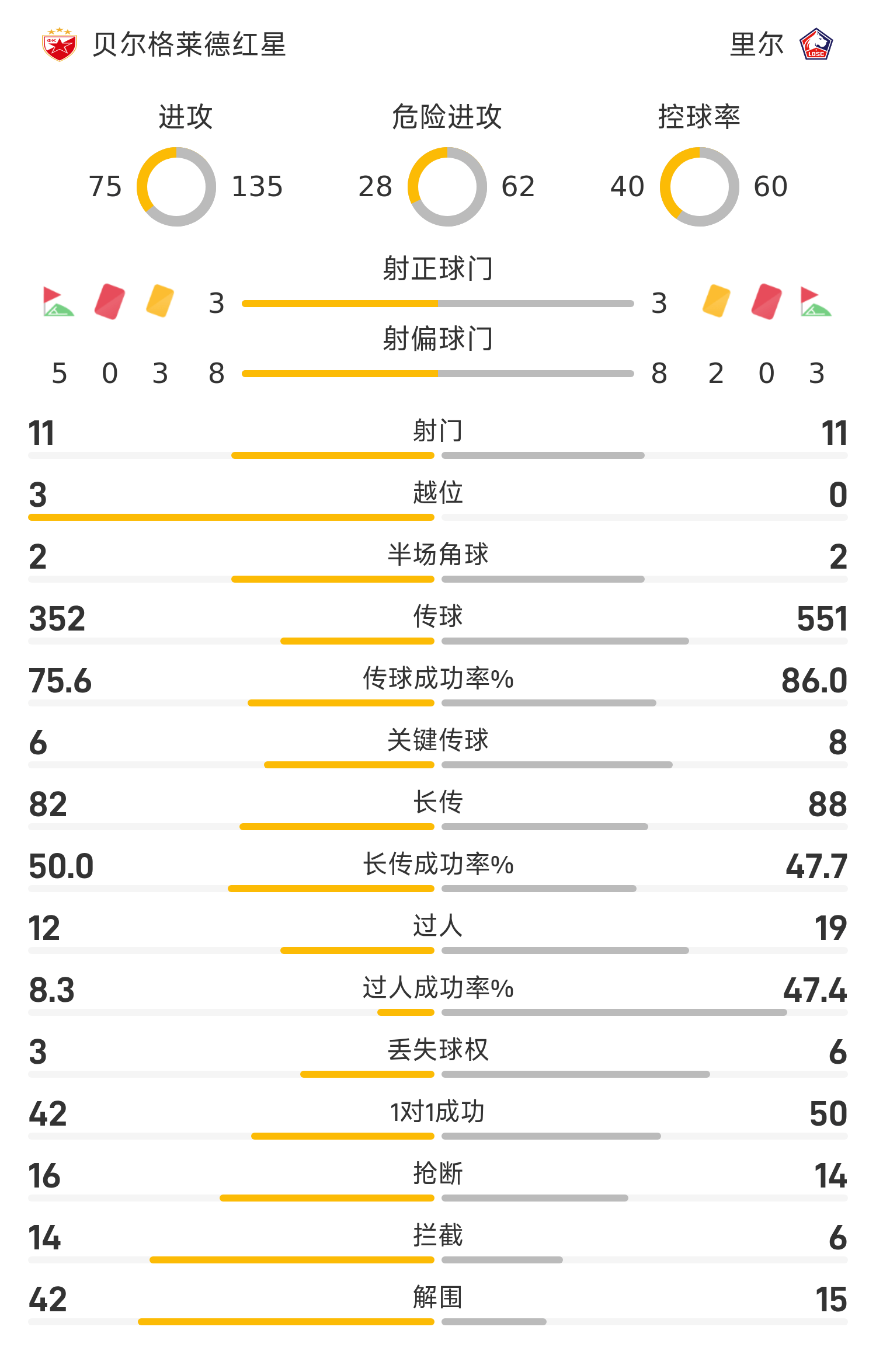 里尔首发阵容:1-奥兹尔、23-曼迪、18-姆本巴、24-维尔东克(86’15-佩劳德)、22-桑托斯(68’12-穆尼耶)、6-本塔莱布、27-科雷亚(67’7-帕尔多)、14-布罗霍尔姆、17-穆考(81’10-哈拉兹森)、32-布阿迪、29-伊格曼(67’9-吉鲁)
